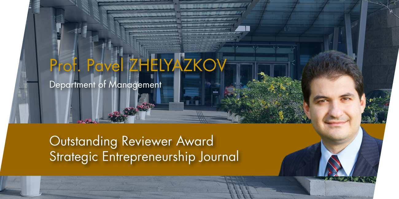 Prof. Pavel Zhelyazkov has received the Outstanding Reviewer Award from the Strategic Entrepreneurship Journal. This award is based on both the quality and quantity of reviews, as well as editors’ recommendations.